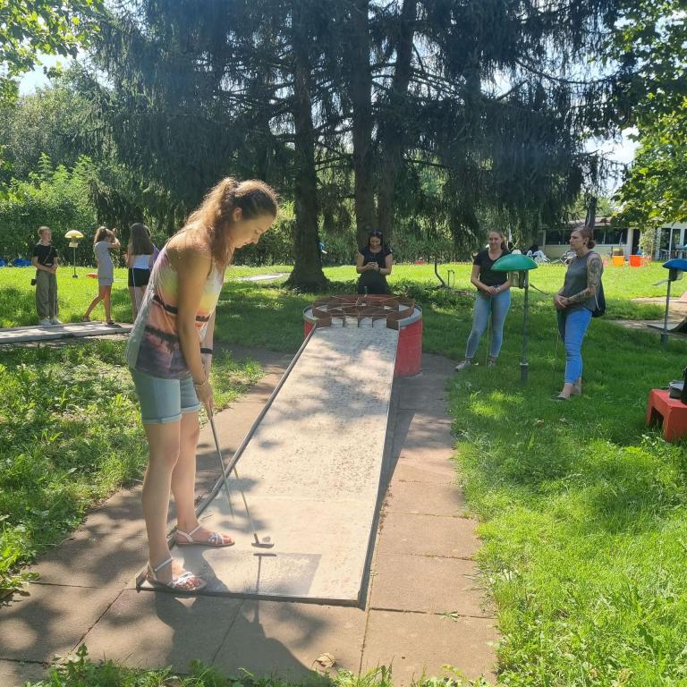 In fröhlicher Atmosphäre wurden die Tänzerinnen zu Beginn in Gruppen aufgeteilt, um ihre Geschicklichkeit auf den abwechslungsreichen Minigolfbahnen unter Beweis zu stellen. Nach dem Spiel erwartete uns hungrigen Mädels eine kleine Stärkung. Getränke und leckere Pommes frites wurden serviert, um die Energiereserven wieder aufzufüllen. Die fröhlichen Gesichter und das anhaltende Gelächter zeugten von einem Tag, der den Zusammenhalt und die Gemeinschaft in den Reihen der Garden weiter gestärkt hat.