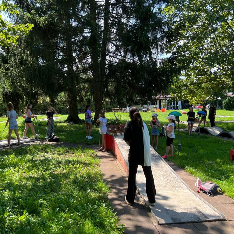 Wir erlebten heute einen schönen Tag abseits der Tanzfläche. Mit unseren Trainerinnen Lisa, Christine und Celine begaben wir Tänzerinnen uns auf eine gemeinsame Minigolf-Expedition im Hennys.