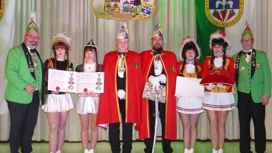 Bereits am 3. Januar wurde durch die Vereinigung Badisch Pfälzischer Fasnacht in Speyer Petra Panzer mit dem Goldenen Löwen mit Brilliant für 44 Jahre aktive Tätigkeit und am 4. Januar Christine Baj mit dem Goldenen Löwe für 22 Jahre aktive Tätigkeit ausgezeichnet. Ihren ersten Auftritt hatte unsere Jugendtanzmariechen Marie Mußler, die mit einem tollen Tanz das närrische Publikum und Ihre Trainerin Lara Panzer begeisterte. Auch für unser Jugendtanzmariechen Lina Borth war es Ihr erster Auftritt, sie begeisterte ebenfalls das Publikum und Ihre Trainerin Jasmin Fuchs. Mit dem Motto "Ein Fisch schwimmt selten allein" eroberte die Minigarde die Herzen der Besucher im Sturm. Trainiert werden die Minis von Lara Panzer, Alexa Theis und Jasmin Fuchs, betreut durch Petra Panzer. Ein besonderer Moment war der tolle Auftritt von Juniorentanzmariechen Lisa Ginz, die an diesem Tag ihren Geburtstag feierte. Der ganze Saal stimmte in ein fröhliches "Happy Birthday" ein. Trainiert wird Lisa von Petra und Lara Panzer. Tanzmariechen Maya Assmann verzauberte das Publikum mit ihrer tänzerischen Eleganz. Trainiert wird Maya von Jessica Stahl und Jessica Stumpf. Die Jugendgarde, Juniorengarde und Prinzengarde beeindruckten mit atemberaubenden Marschtänzen. Das Publikum wurde von unserem Schautanz mit dem Thema "Piraten" durch eine atemberaubende Reise geführt. Hier geht ein großes Lob an die Trainerinnen der Garden, Lisa-Marie Müller, Viktoria Fink, Christine Baj und Celine Seipp. Auch die Spiele kamen nicht zu kurz. Die Paare aus Neckargemünd, Pfaffengrund und Kronau lieferten sich einen mitreißenden Wettbewerb, indem sich das Paar aus Kronau den Sieg zurück holte. Auch hier musste Oberbürgermeister John Ehret helfend für die Prinzessin aus Neckargemünd eingreifen. Mit drei donnernden "Dilje Helau" geht unser Dankeschön an alle Beteiligten, von den Akteuren auf und hinter der Bühne über das Bar- und Küchenpersonal bis hin zu den helfenden Händen beim Auf- und Abbau. Ein besonderer Dank gebührt Elferrat Jens Brokmeier sowie Chris, die mit Lichttechnik und Musik die perfekte Begleitung boten.